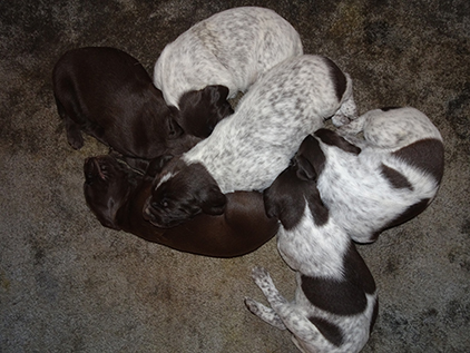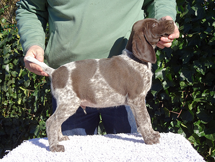 Mutter: Norma vom Geestmoor (Fiete vom Geestmoor x Wolke vom Geestmoor) D 1/J, D 1, S 1/J, S 1 (Vorstehen 4h), VGP 1 (Nase 4h), SW 1/, LN, HN, Europasieger, Landessieger, CACIB, CAC, V 1, HD-B1